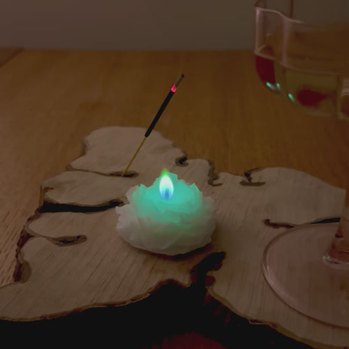 Śnieżna Róża - świeca z kolorowym płomieniem